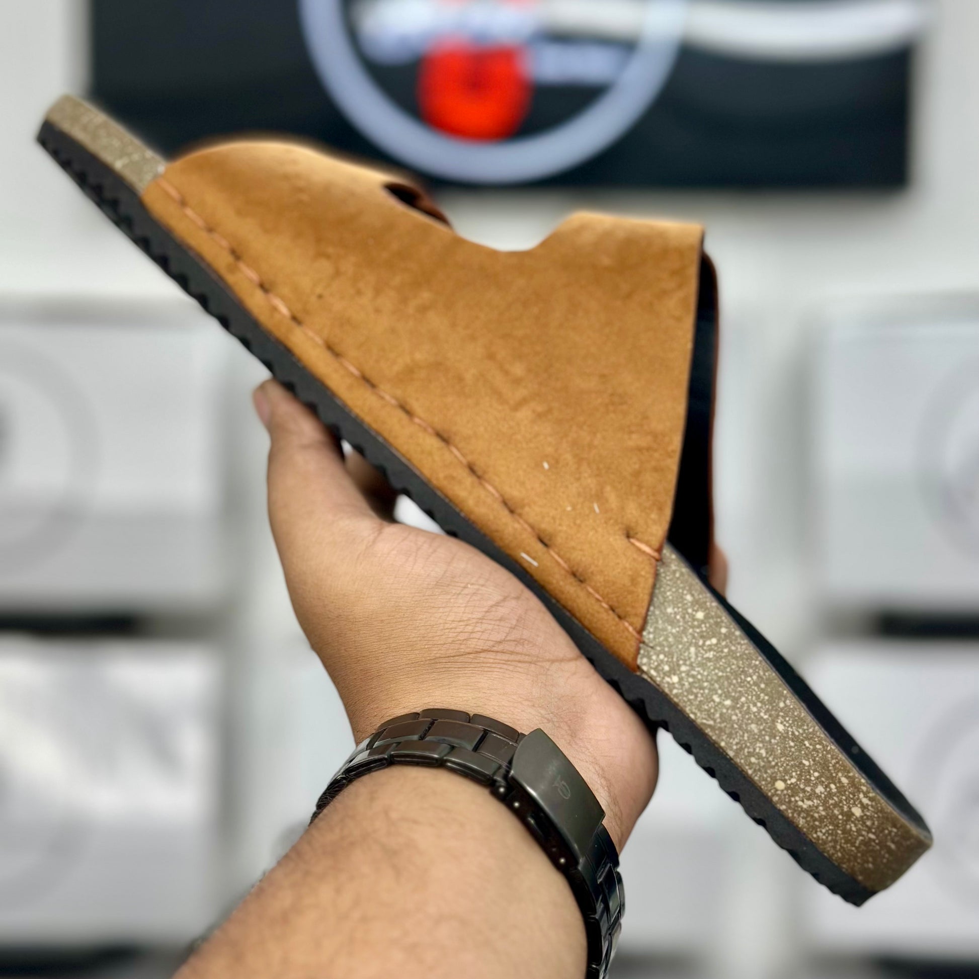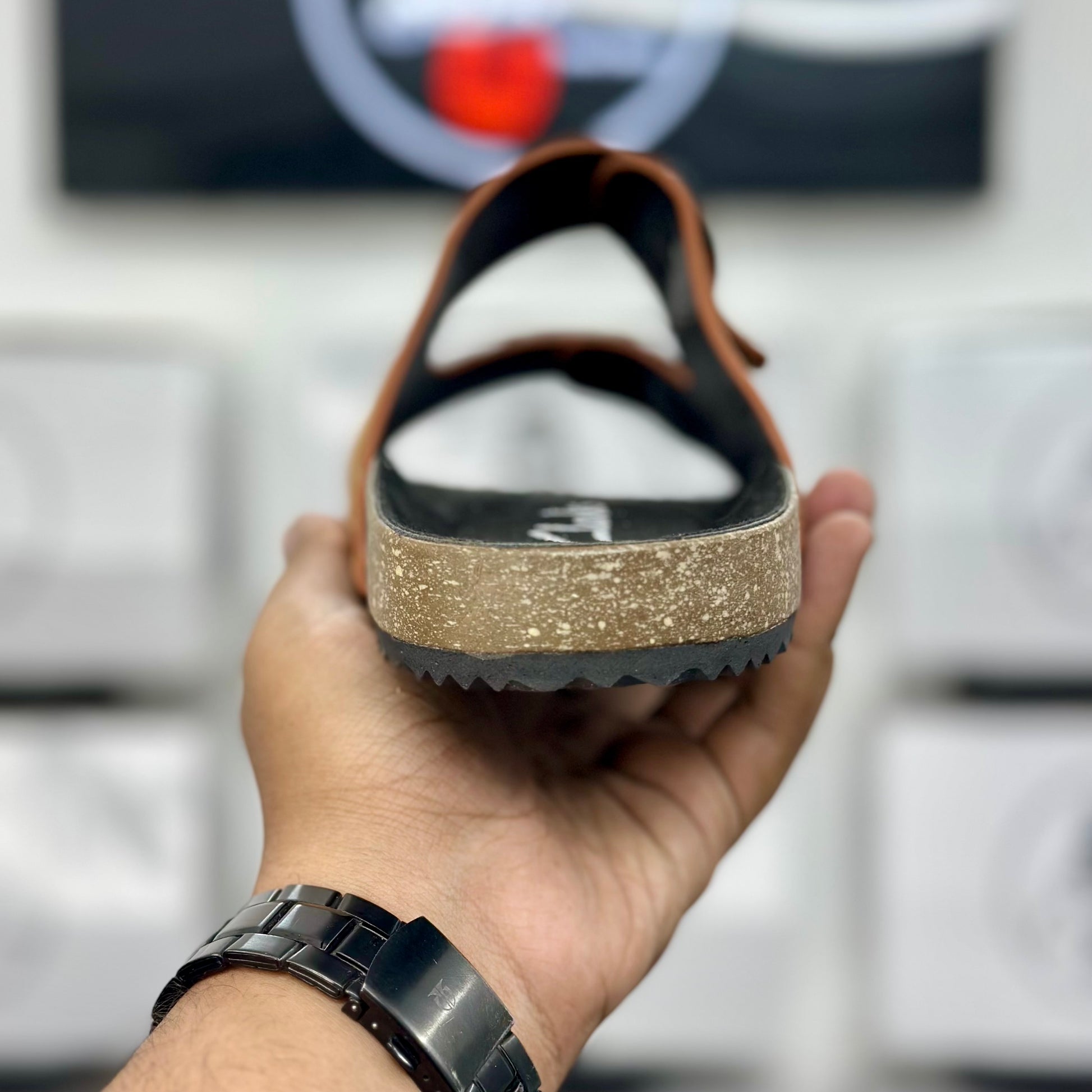 Experience a superior blend of comfort and casual style with these Men's Classic Buckle Slides. This timeless sandal is crafted with a soft, suede-look upper in a rich tan shade and features two adjustable matte-black buckles to ensure a perfect fit.