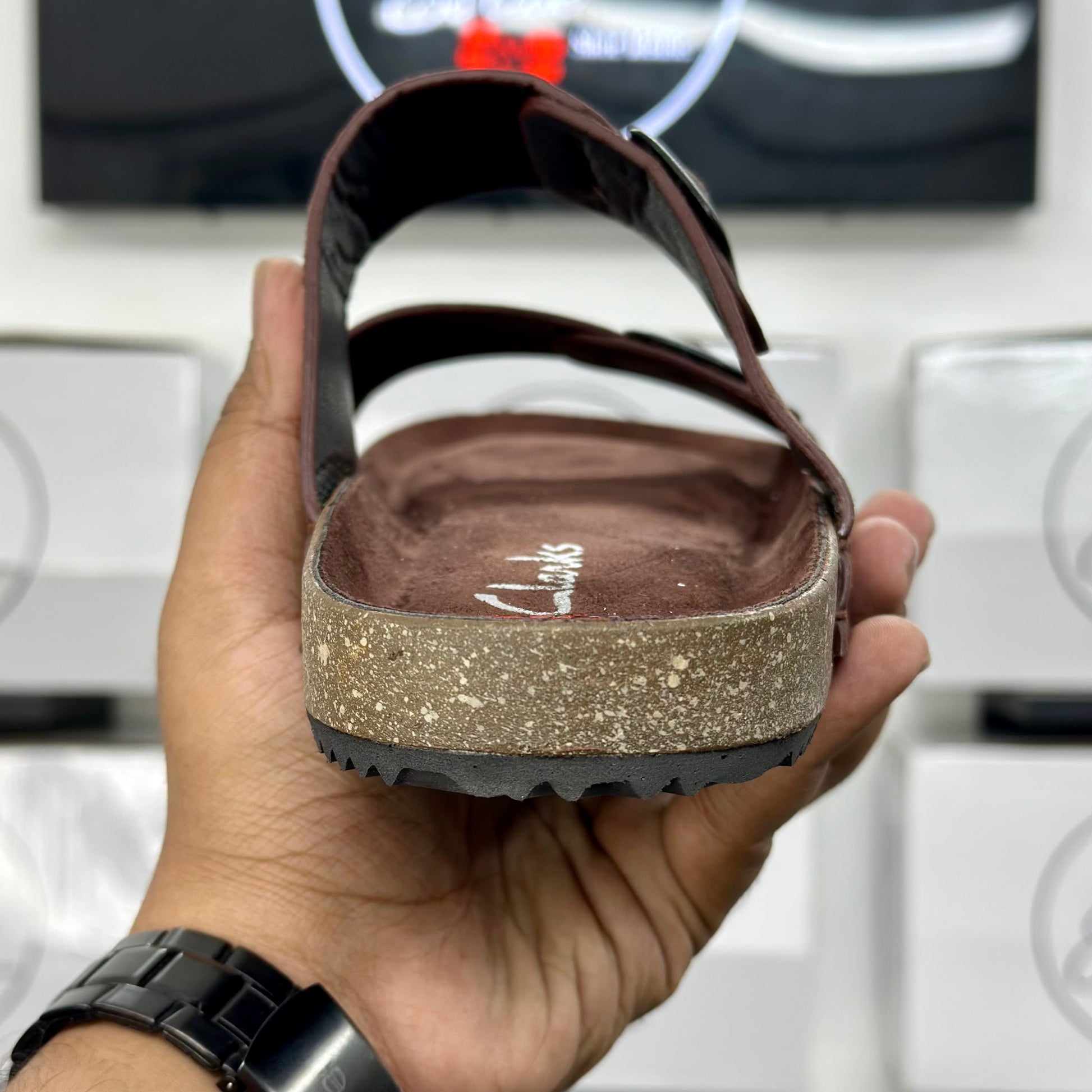 Esrakz Rich Brown Dual-Strap Cork Footbed Comfort Slides